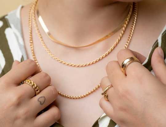 Auksas – klasikinis ir labai populiarus pasirinkimas. Auksiniai žiedai gali būti geltono, balto arba rožinio aukso.